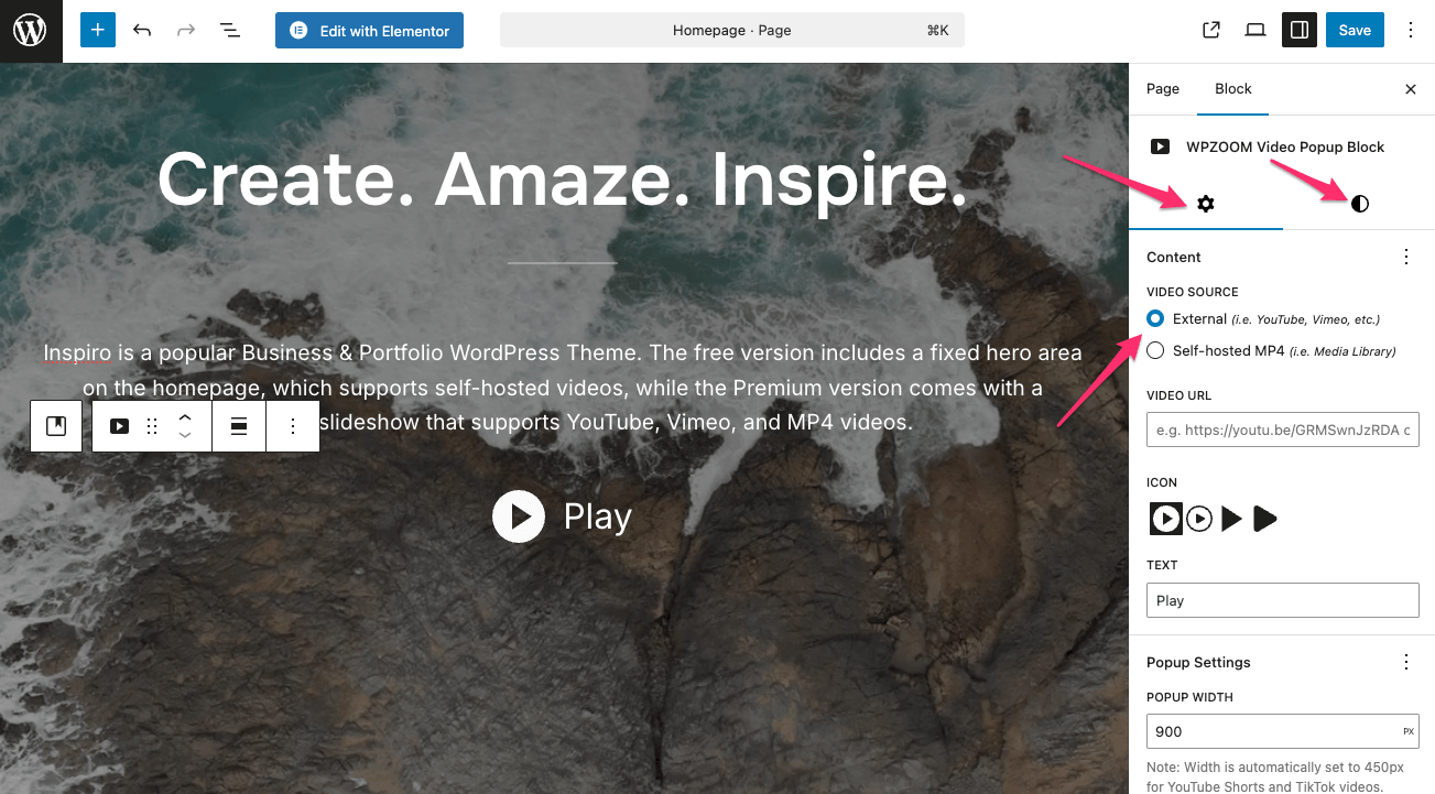 1. Install the Video Popup Block by WPZOOM plugin.